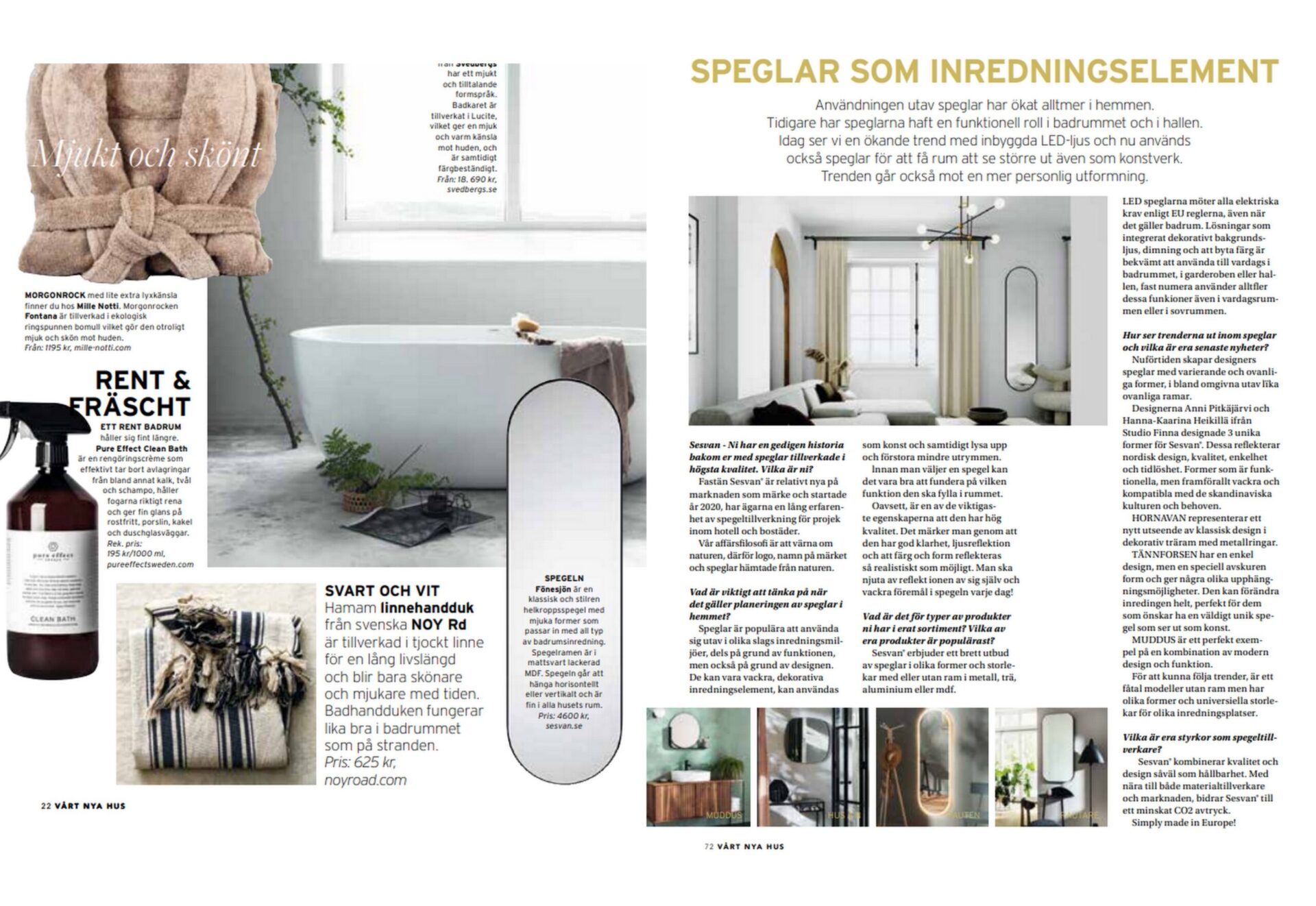 Media Se vilka som skrev om våra produkterhttps://www.studiofinna.com/references-studio-finna/mirror-collection-for-sesvanhttps://www.mynewsdesk.com/se/pretopia-ab/pressreleases/nu-vaelkomnar-vi-sesvan-till-pretopia-3200312https://online.fliphtml5.com/zxhnr/lksc/#p=19Plaza kök&bad nr.1 2023Vårt Nya Hus nr. 4 2023https://www.mynewsdesk.com/se/pretopia-ab/blog_posts/dekorativ-spegel-i-modern-design-114312Sydväst inspiration nr 5/2023Plaza kök&bad nr.3 2023Hem Ljuva Hem nr.3 2023Modern Interiör nr.4 2023Vårt Nya Hus nr. 5 2024Journalister och bloggareHögupplösta bilder och annan information finns tillgänglig som vi gärna delar med oss av om ni kontaktar oss på: info@sesvan.com eller under arbetstid: +46(0)725323299