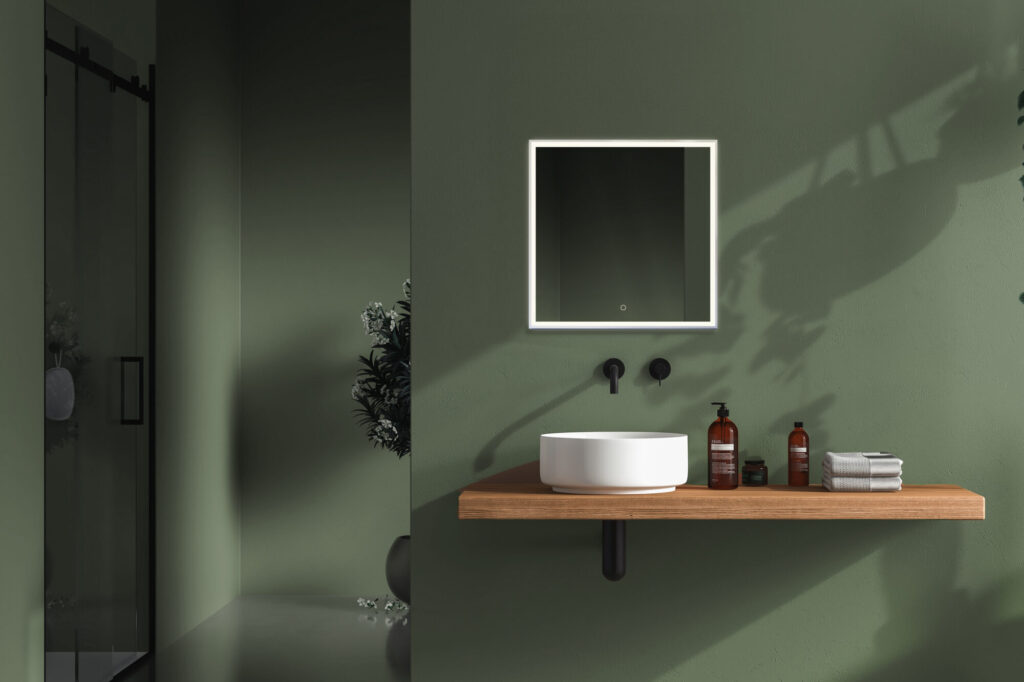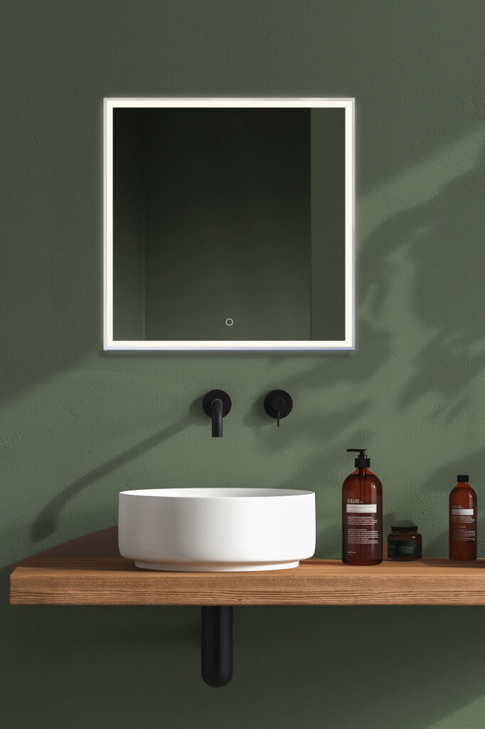 Att styra belysningen är extremt enkelt – tryck bara på sensorn på spegeln för att tända eller släcka ljuset.