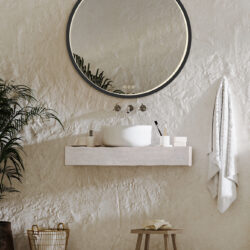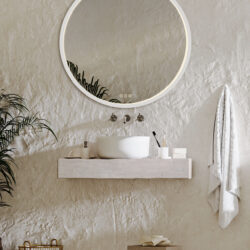 Den runda formen i kombination med en elegant mattvit finish skapar ett ljust och harmoniskt uttryck som ger badrummet en känsla av rymd och visuell balans.