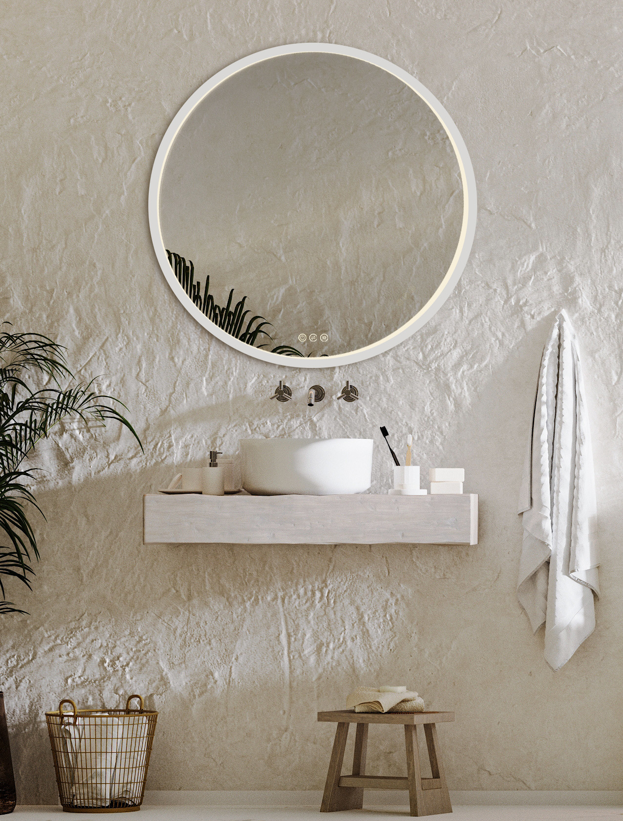 Rund Badrumsspegel LED EMMA 90 cm – Mattvit – Imfri & Justerbart ljus