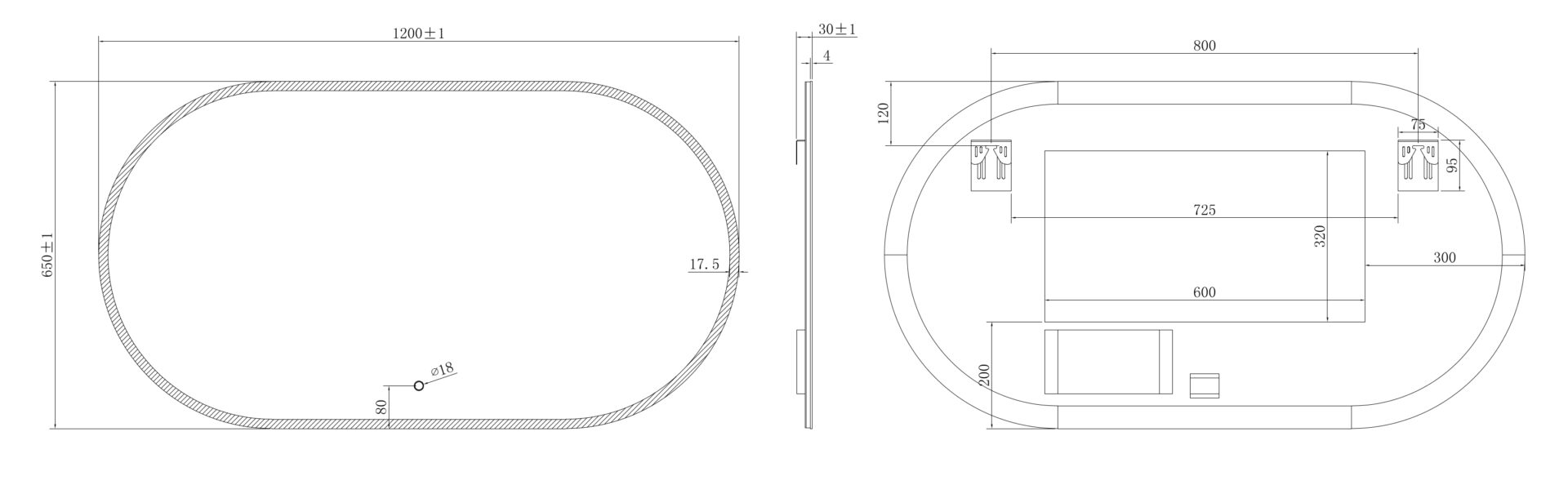 LENI erbjuder två olika spegelmått: 400×800 mm, 1200×650 mm