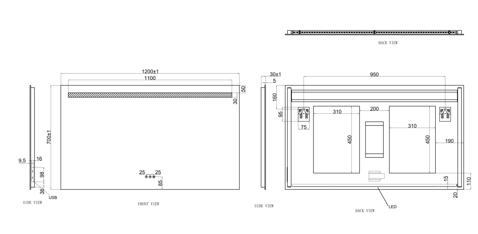 Spegeln har ett USB-uttag och tack vare det du kan ladda dina elektroniska enheter direkt i badrummet.