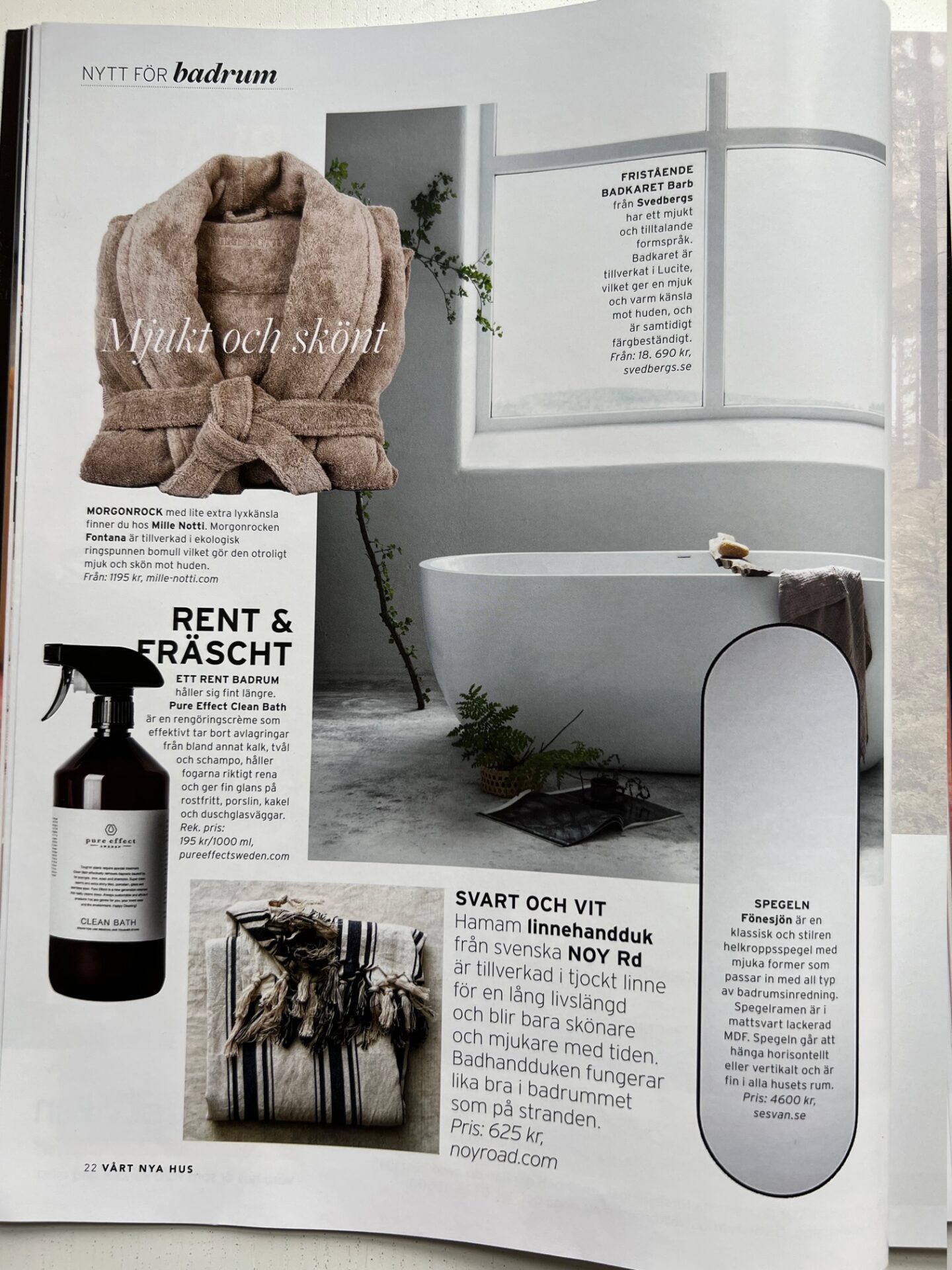 I tidningen „Vårt Nya Hus”, som är full av en mängd olika artiklar och inspiration för heminredning, är närvaron av vårt varumärke en ära som vi är mycket stolta över! Det är en exceptionell utmärkelse att vår produkt har fått en plats i en så högt respekterad inredningsmagasin.